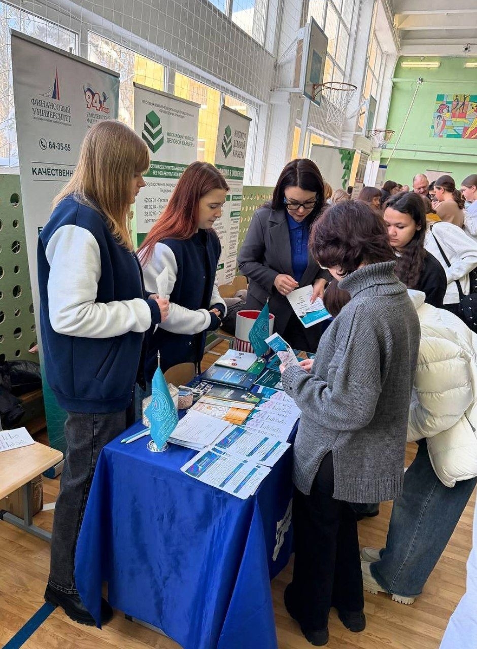 Руководитель группы по работе с партнёрами Оксана Мерзлова и представители Студенческого совета Финансового университета Дарья Трубкина и Александра Яночкина познакомили ребят с правилами приёма в вузы экономической направленности, рассказали о программах обучения в Финансовом университете, а также об интересной и насыщенной студенческой жизни.