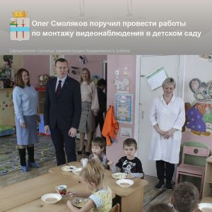 Олег Смоляков обсудил с заведующей садиком и воспитателями вопросы, требующие особого внимания. Главная задача, которую поставил Глава Кардымовского района перед курирующим заместителем и руководителем детского сада, – это оснащение садика камерами видеонаблюдения, которые должны быть установлены и внутри, и снаружи здания.