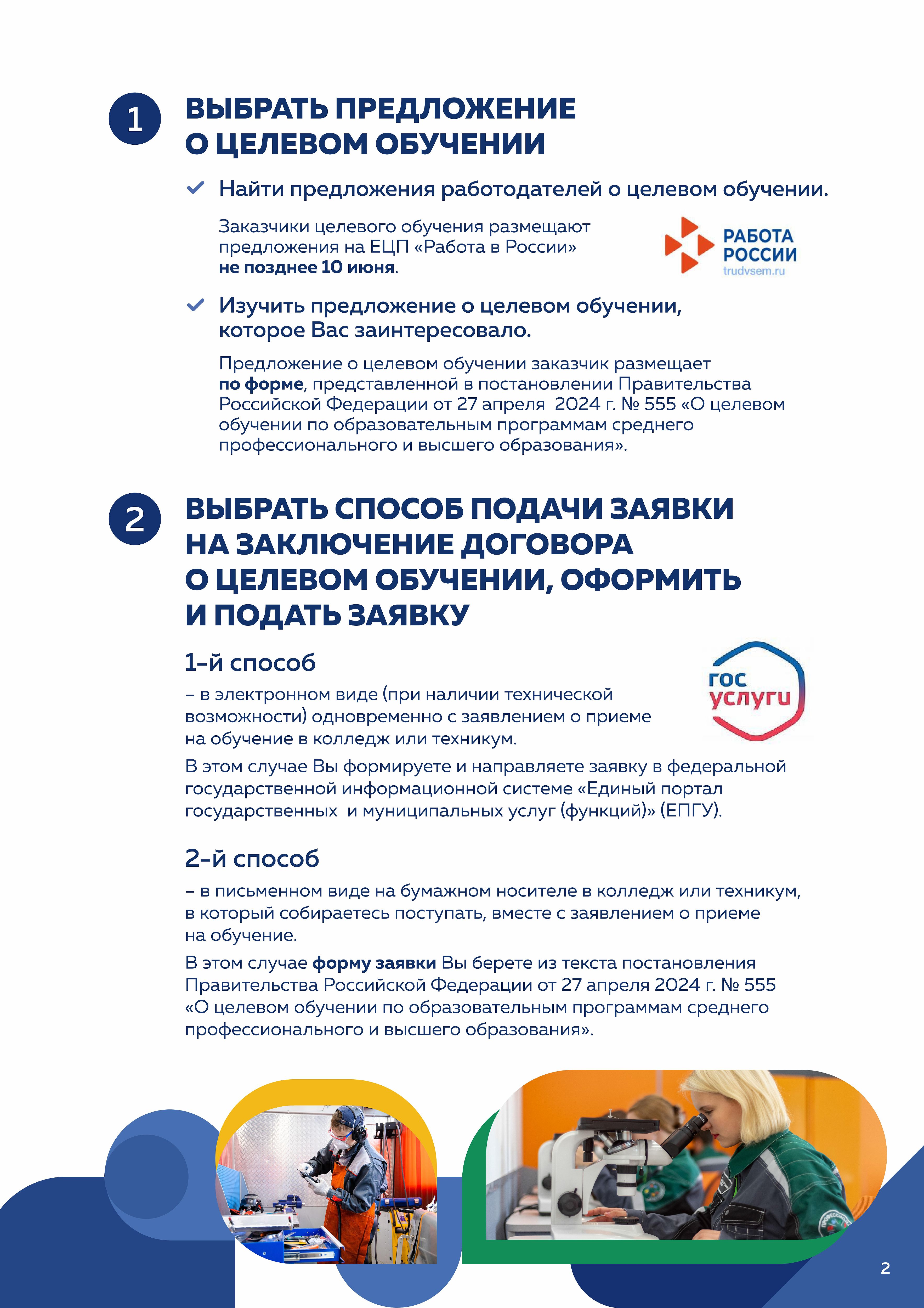 Новый механизм целевого обучения в организациях среднего профессионального образования действует с 2024 года. Информация о целевом обучении теперь размещается на единой цифровой платформе «Работа в России». Именно здесь можно ознакомиться с предложениями работодателей в целом по стране и выбрать регион для прохождения целевого обучения.