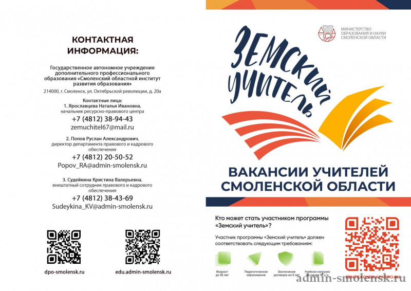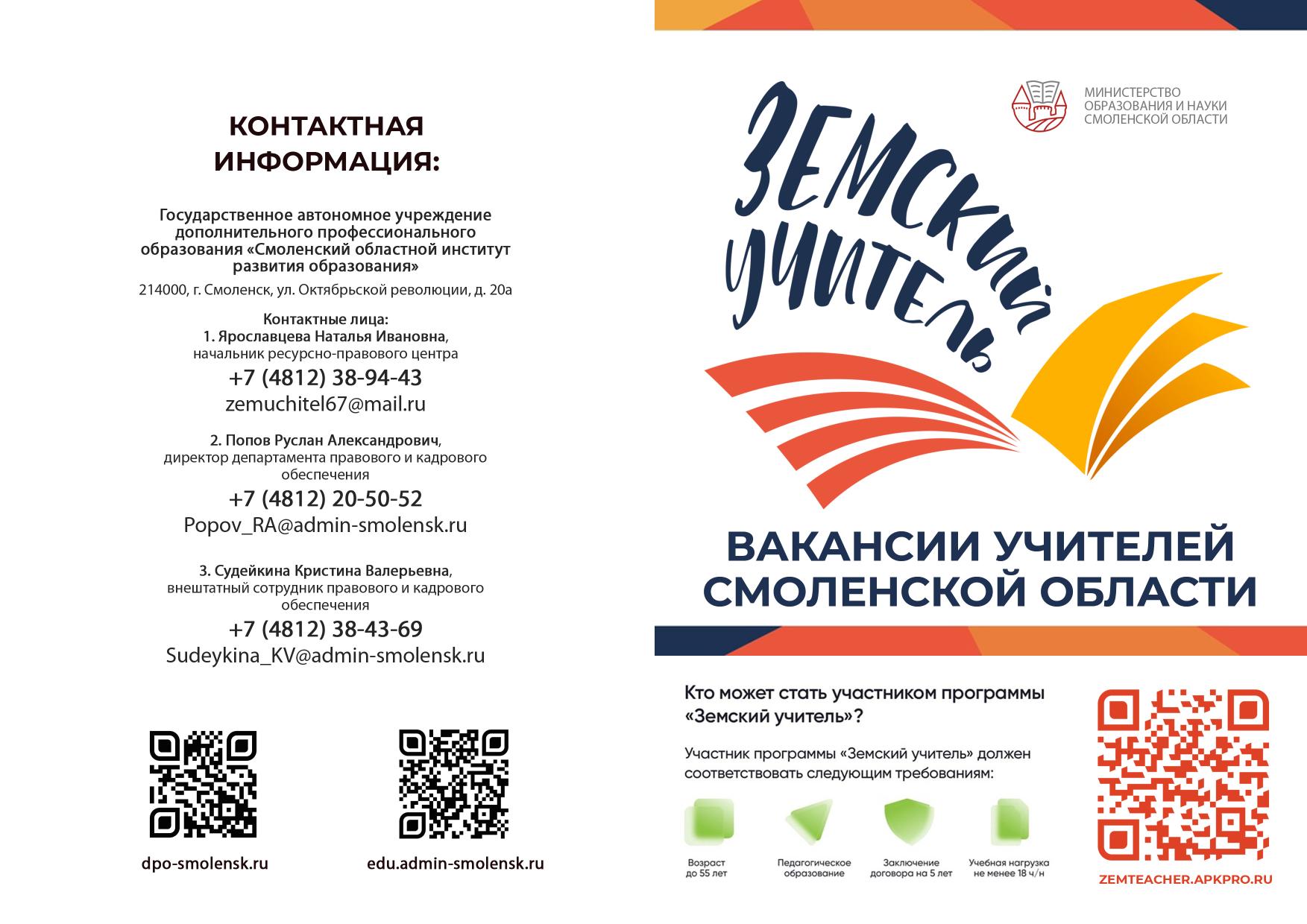 Министерством образования и науки Смоленской области реализуется проведение конкурсного отбора претендентов на право получения единовременной компенсационной выплаты учителям, прибывшим (переехавшим) на работу в сельские населенные пункты, либо рабочие поселки, либо поселки городского типа, либо города с населением до 50 тысяч человек в рамках областной государственной программы «Развитие образования в Смоленской области».